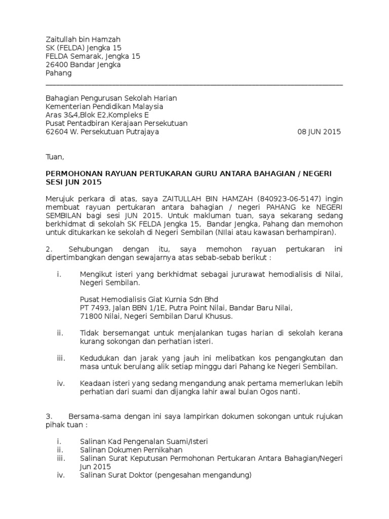 Contoh Surat Rayuan An Pertukaran Mengikut Suami Pdf